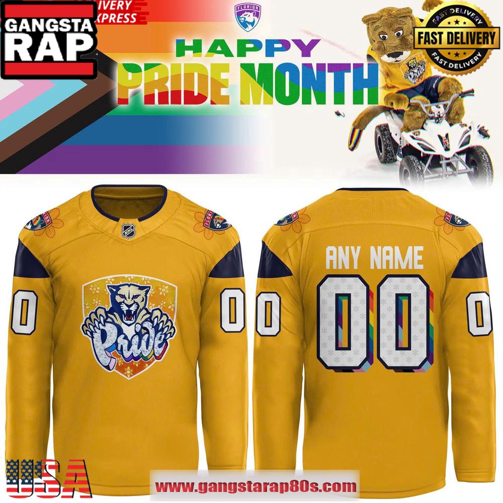 2025 Florida Panthers Pride Month Special Gold Custom Hockey Jersey