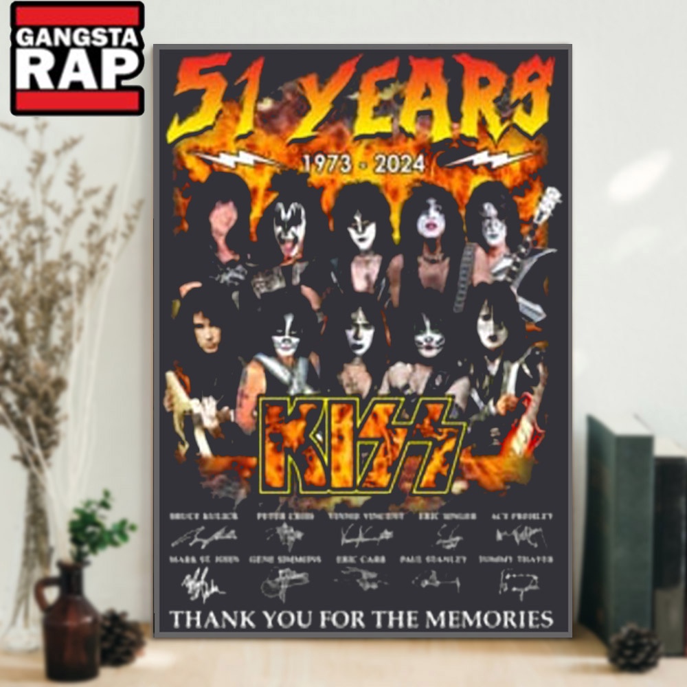 The 51 Years 1973-2024 Kiss Band Thank You For The Memories Signature Poster Canvas Art is a celebration of music memories, connecting the past to the present. It serves as an innovative conversation starter and a testament to the enduring impact of rock music on pop culture.