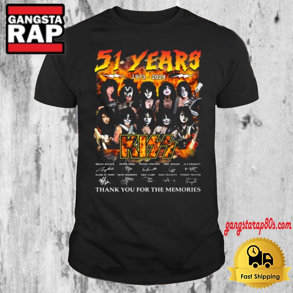 Product details: 51 Years 1973-2024 Kiss Band Thank You For The Memories Signature T Shirt