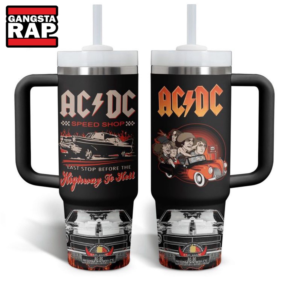 With its durable design and practical features, the ACDC Speed Shop Last Stop Before The Highway To Hell Stanley Tumbler makes an excellent gift for friends, family, or even for yourself. Celebrate the music you love while enjoying your coffee, tea, or any beverage of choice in a tumbler that resonates with the essence of rock culture.