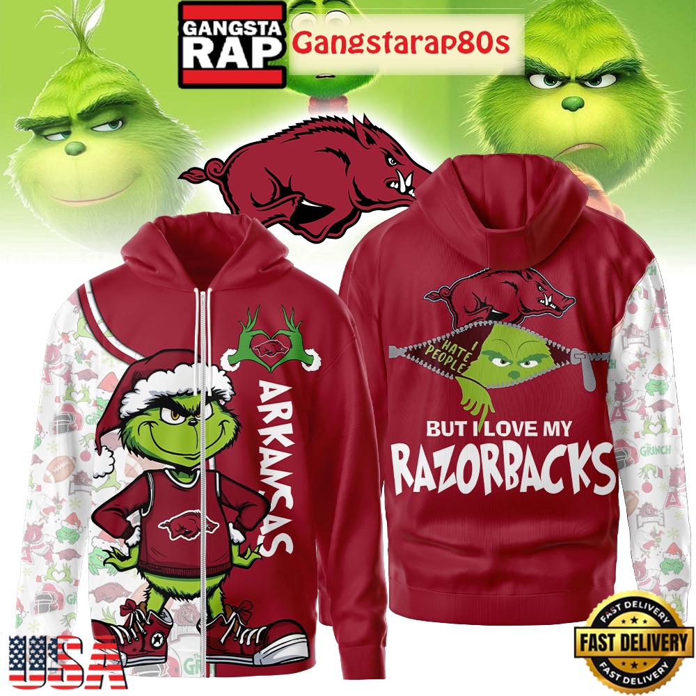 Arkansas Razorbacks NCAA Funny Grinch Football Unisex Zip Hoodie