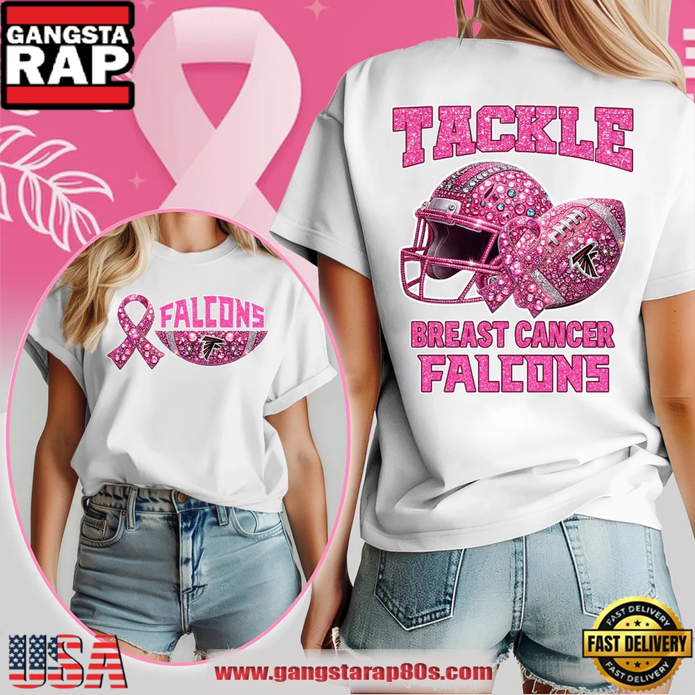 Atlanta Falcons NFL Glitter Tackle Breast Cancer 2025 Women’s Shirt – White