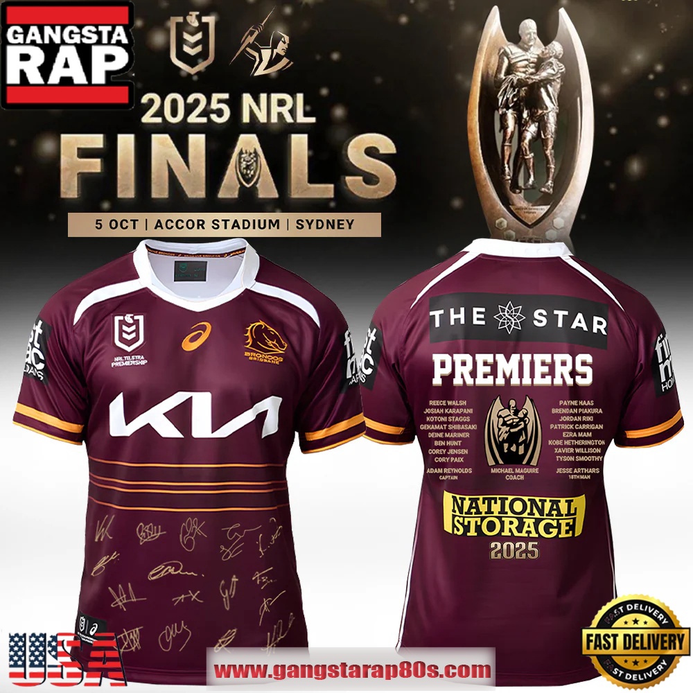 - Brisbane Broncos NRL Finals 2025 Champions Signature Combo Black Shirt
