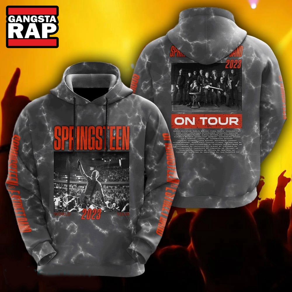 As a vital piece of concert merchandise, the Bruce Springsteen Band Music On Tour All Over Print Hoodie is perfect for those who cherish live performances and want to express their enthusiasm for Springsteen’s captivating shows. Whether you’re reminiscing about his past tours or gearing up for his current events, this hoodie aligns perfectly with your passion for rock music.