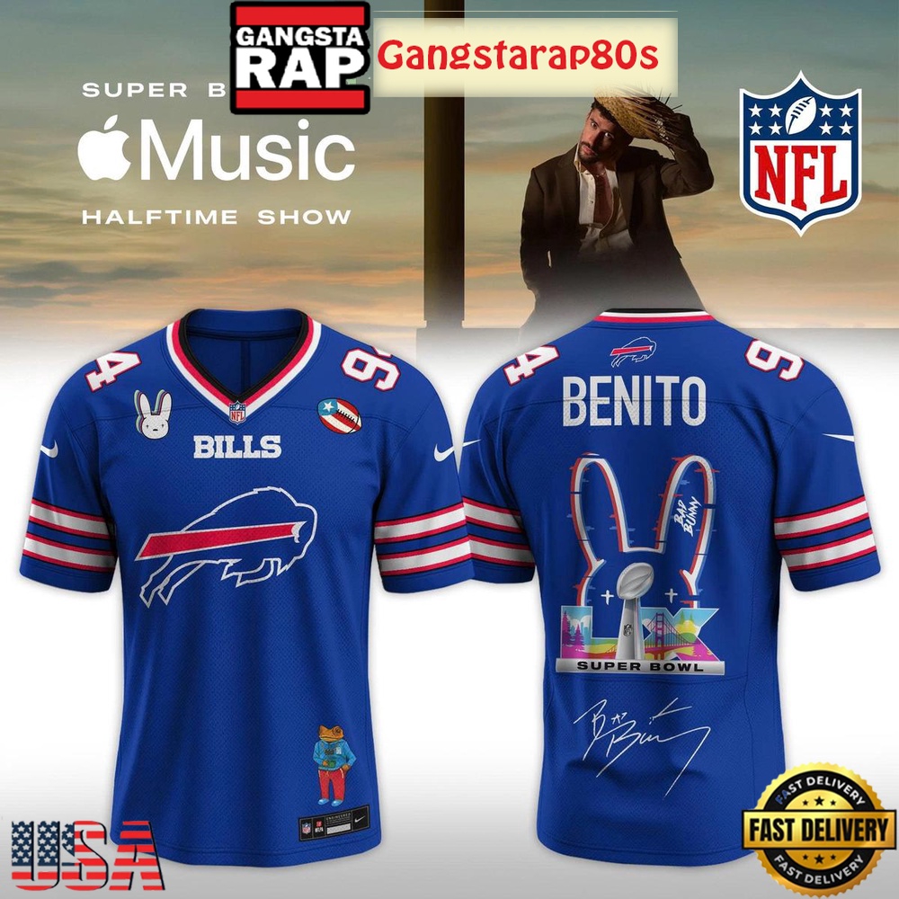 Designed for those who crave a unique blend of athletic wear and celebrity style, this jersey offers the perfect tribute to both Buffalo Bills pride and Bad Bunny’s trailblazing Super Bowl debut. Made with high-quality, breathable fabric, it ensures maximum comfort whether you’re cheering in the stands or watching from home.