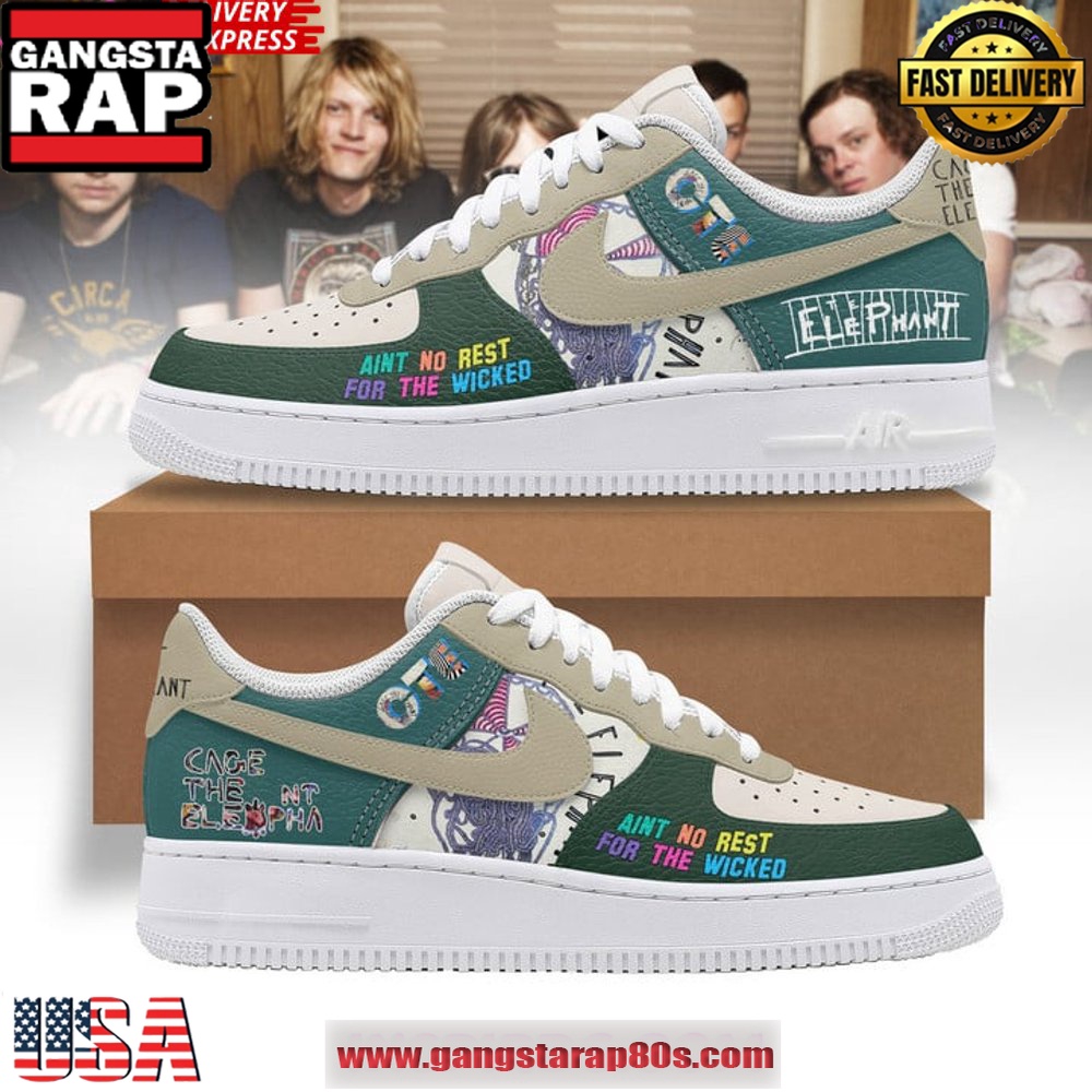 Embrace the fusion of music and fashion with the Cage The Elephant Limited Edition Air Force 1 Sneakers, and let your feet do the talking.