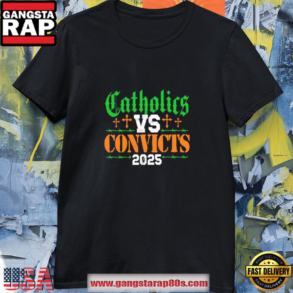 Catholics Vs Convicts 2025 Black Shirt Introducing our 2D Shirt, a unique blend of style and creativity. Crafted from high-quality fabric, this shirt features a captivating 2D graphic design that adds a bold statement to your wardrobe. With its vibrant colors and intricate details, it offers a modern twist on classic apparel. Elevate your fashion game with our 2D Shirt, designed to turn heads and express your individuality in style.