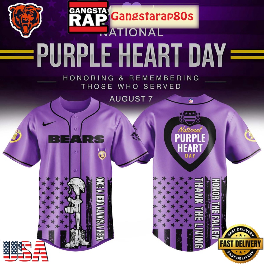 Chicago Bears Purple Heart Day 2025 Unique Design Baseball Jersey
