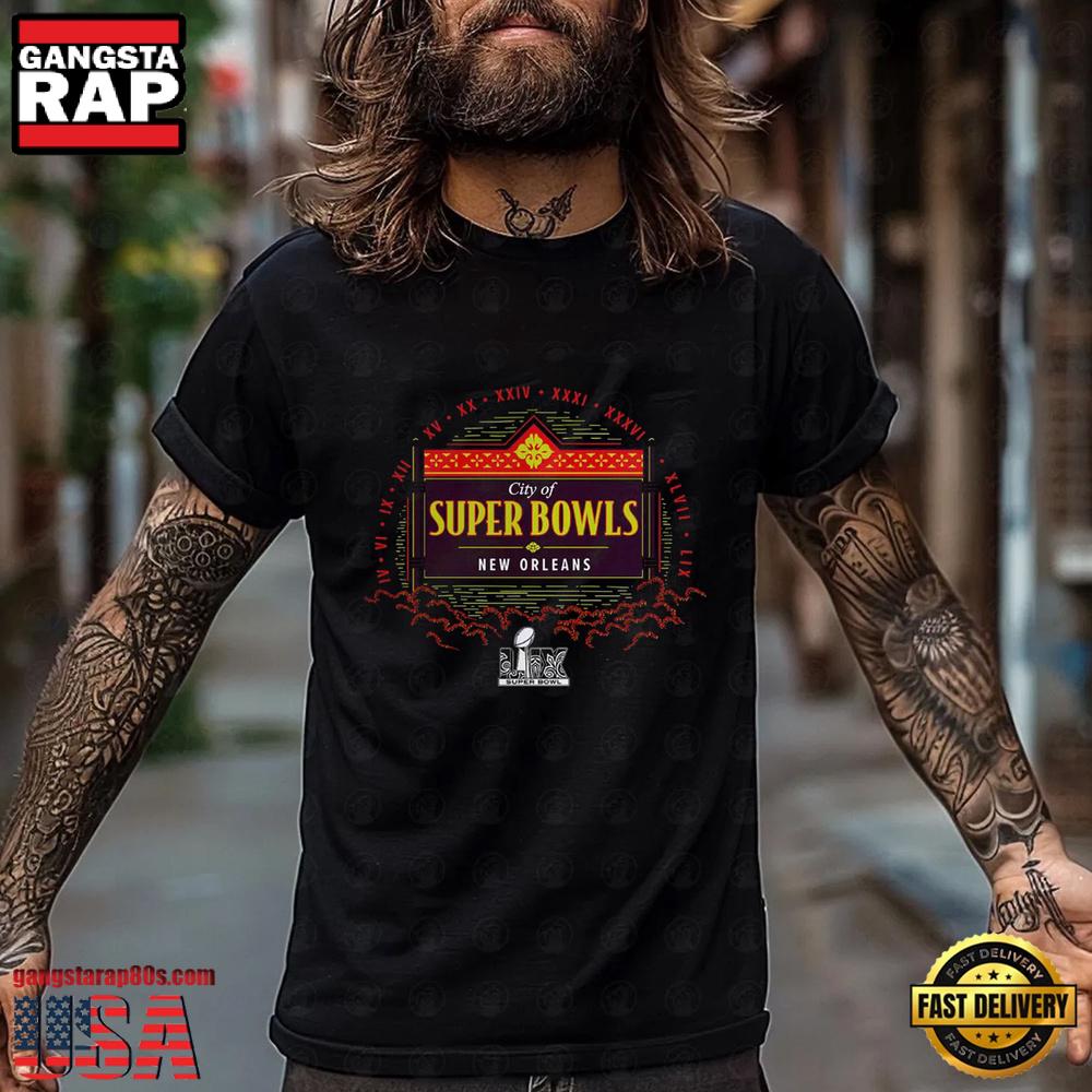 Gear up for an unforgettable sports season with the City of Super Bowl LIX NFL New Orleans Black T-Shirt, a must-have item for any devoted football fan. This exclusive t-shirt embodies the spirit and history of the Super Bowl LIX, held in the vibrant city of New Orleans, known for its lively culture and passionate fan base. Crafted for both style and comfort, this shirt serves as more than just apparel; it’s a tribute to monumental moments in NFL history.