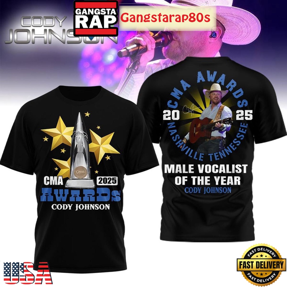 Celebrate the musical triumphs of Cody Johnson with this exclusive Male Vocalist Of The Year 2025 Unisex T-Shirt. Perfect for fans who want to commemorate his incredible achievement, this stylish unisex t-shirt blends comfort and style, making it a must-have for any wardrobe.