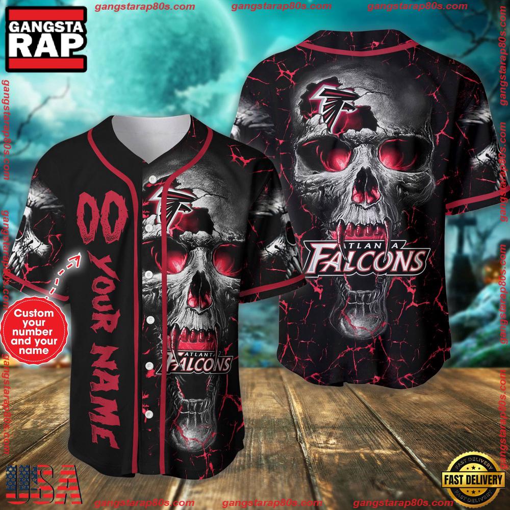 Custom Name And Number Atlanta Falcons NFL Team Skull Baseball Jersey Shirt