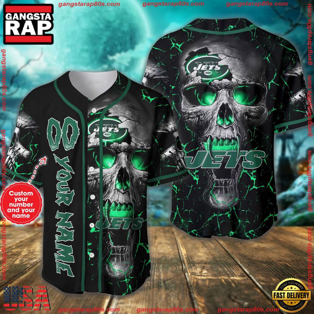 Custom Name And Number New York Jets NFL Team Skull Baseball Jersey Shirt