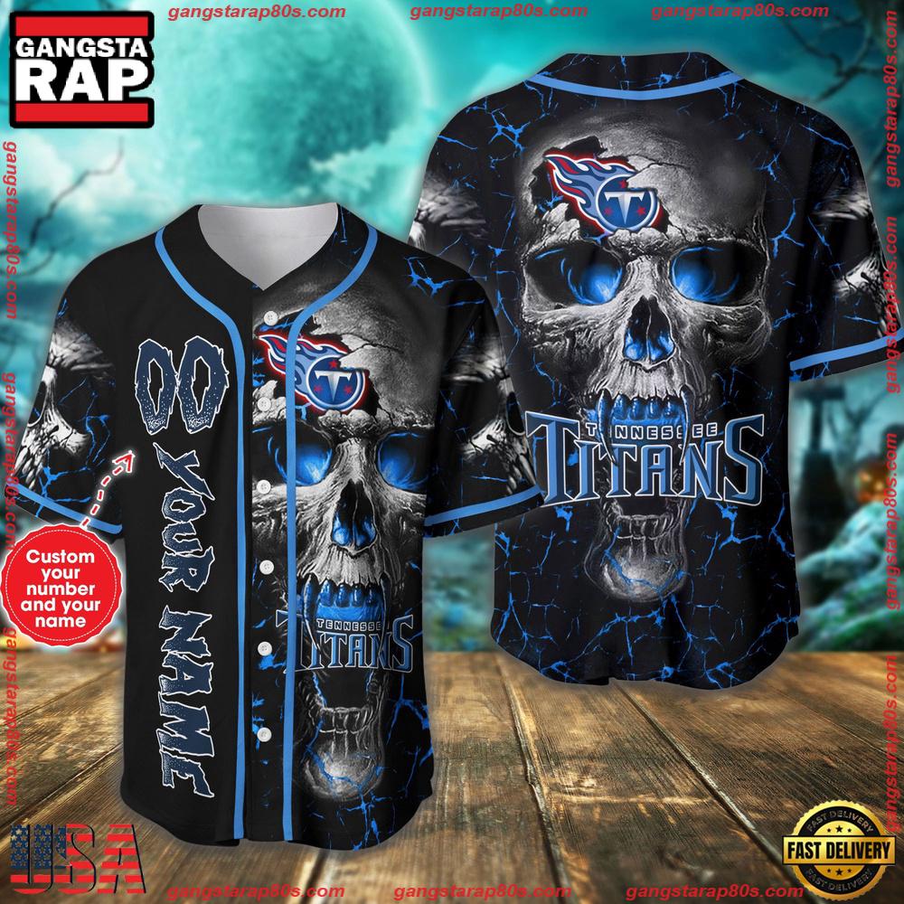 Custom Name And Number Tennessee Titans NFL Team Skull Baseball Jersey Shirt