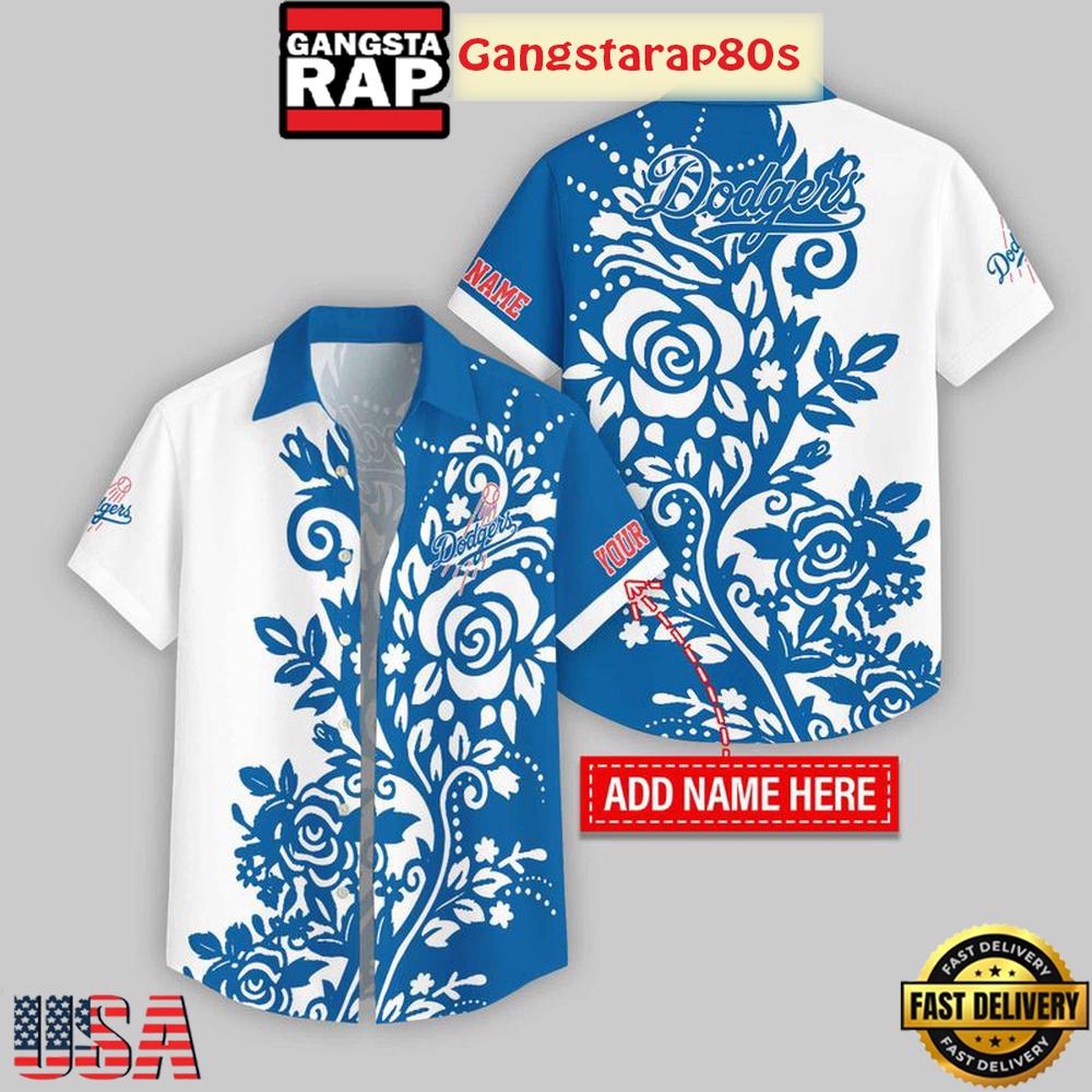 Photos Of Custom Name Los Angeles Dodgers Rose Branch Pattern Aloha Hawaiian Shirt