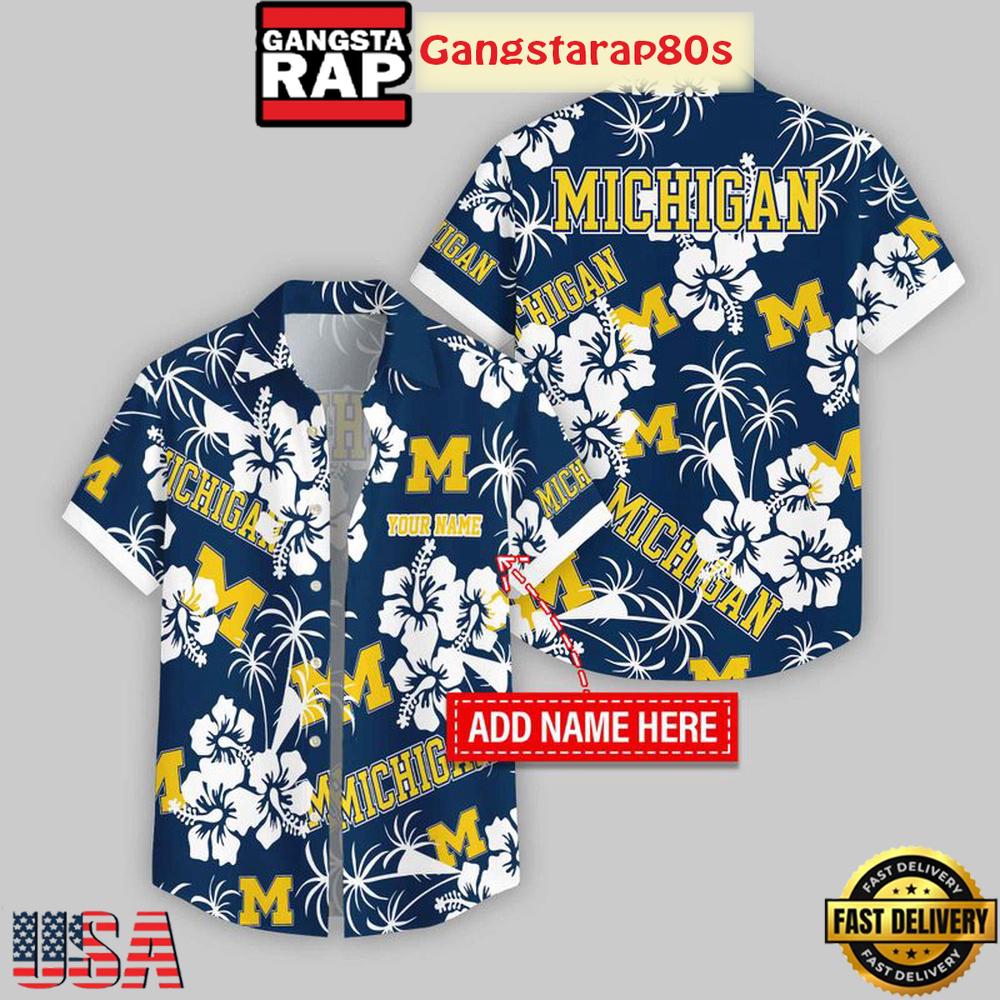 Photos Of Custom Name Michigan Wolverines Hibicus Aloha Hawaiian Shirt