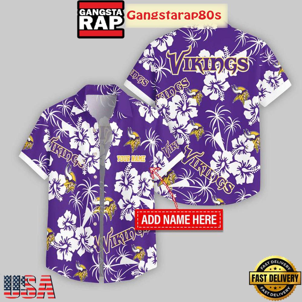 Photos Of Custom Name Minnesota Vikings Hibicus Aloha Hawaiian Shirt