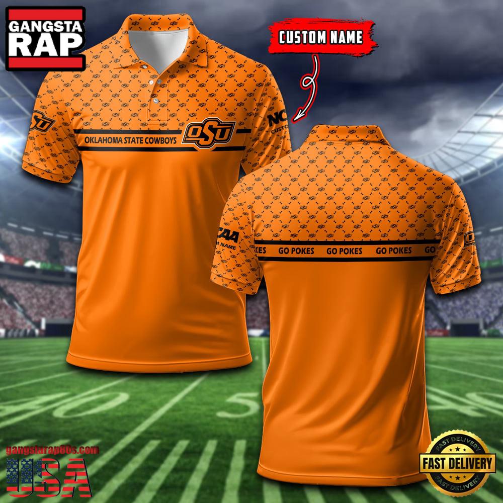 Photos Of Custom Name NCAA Oklahoma State Cowboys Team Logo New Design Polo Shirt