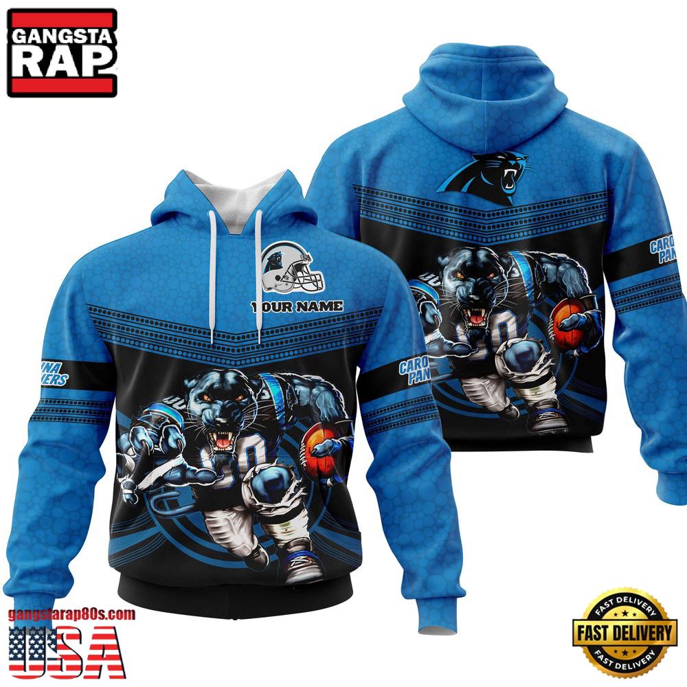 Unleash your team spirit and showcase your fandom with the Custom Name NFL Carolina Panthers Mascot 3D Hoodie, the latest new design that’s taking 2023 by storm. This unique apparel piece not only keeps you warm and cozy but also acts as a perfect tribute to the beloved Carolina Panthers. Made for die-hard fans, this hoodie features an intricately detailed 3D design of the Panther mascot that makes it an iconic choice for every game day.