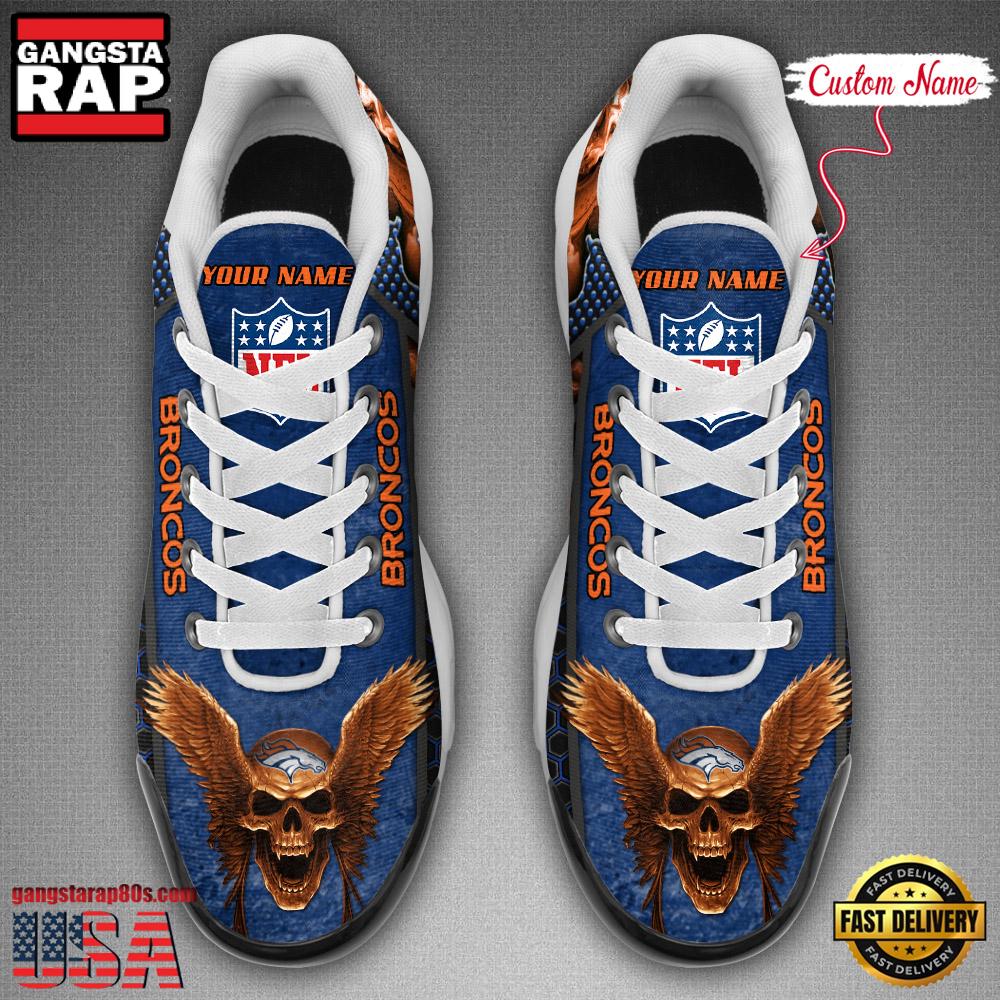 Photos Of Custom Name NFL Denver Broncos Skull Air Max Plus Running Shoes For Men Women