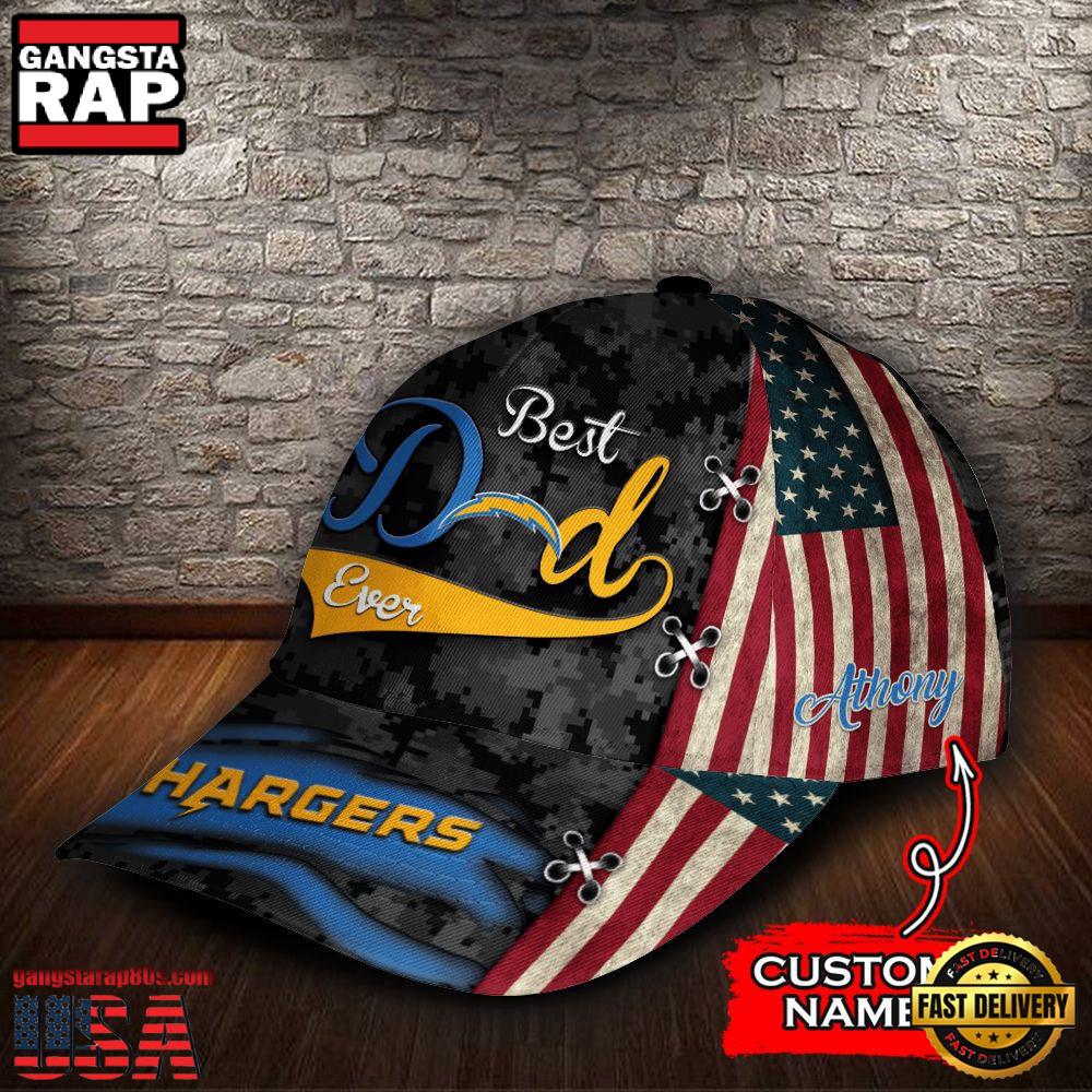 Photos Of Custom Name NFL Los Angeles Chargers Best Dad USA Flag New Design Baseball Cap
