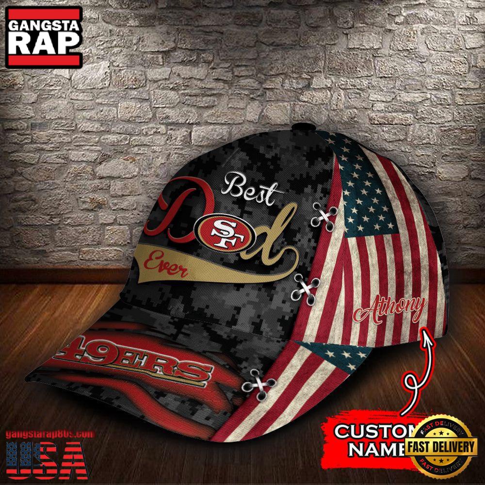 Custom Name NFL San Francisco 49ers Best Dad USA Flag New Design Baseball Cap