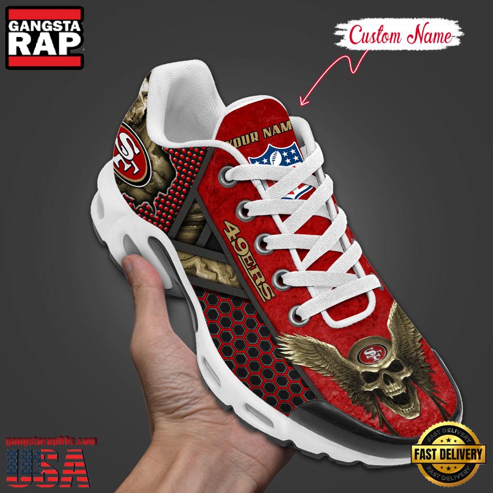 Photos Of Custom Name NFL San Francisco 49ers Skull Air Max Plus Running Shoes For Men Women