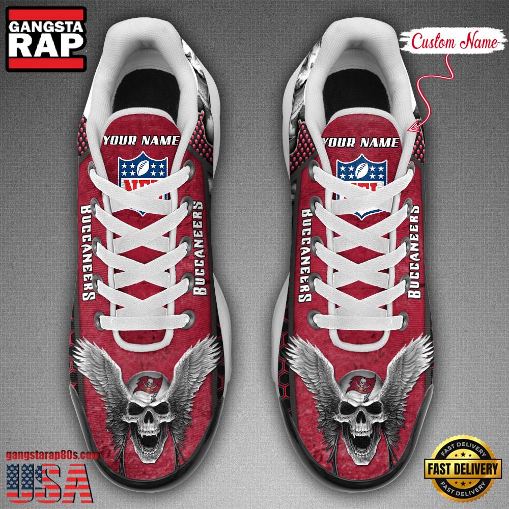 Photos Of Custom Name NFL Tampa Bay Buccaneers Skull Air Max Plus Running Shoes For Men Women