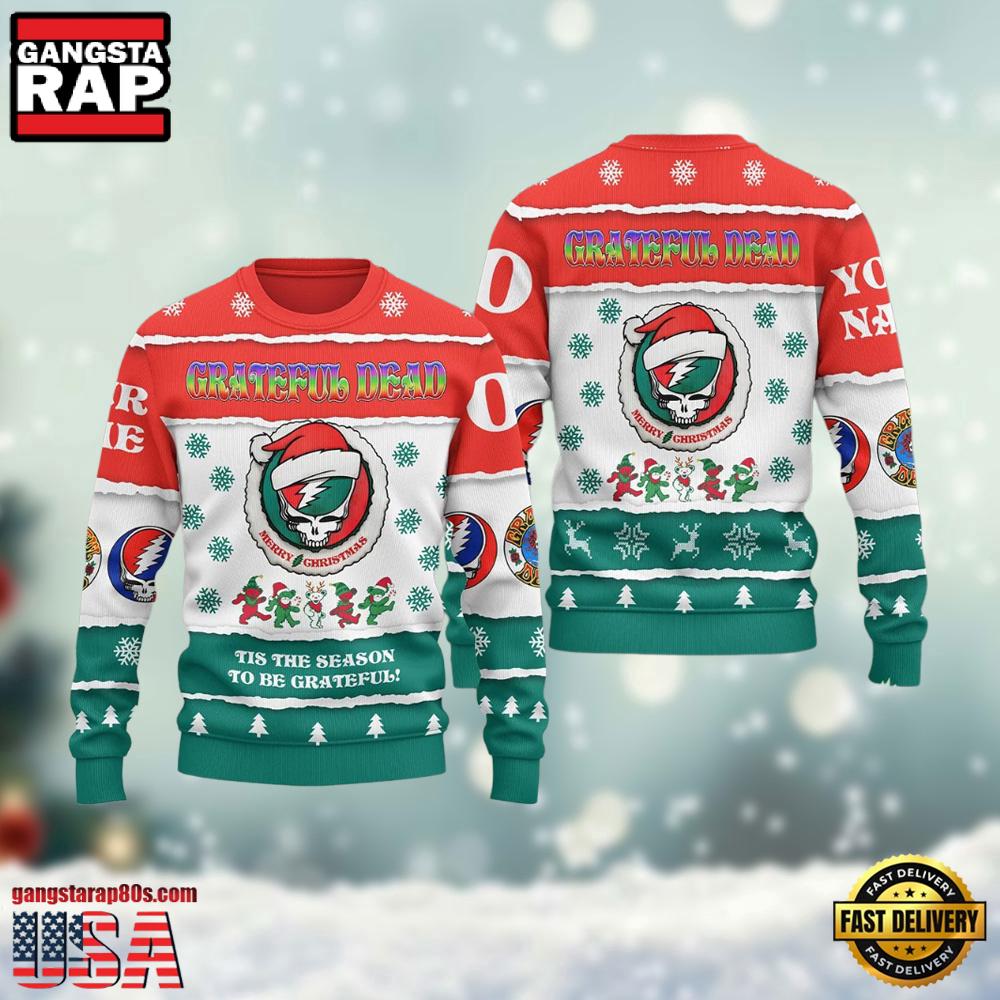 Custom Name Number Grateful Dead Tis The Season To Be Grateful Ugly Christmas Sweaters