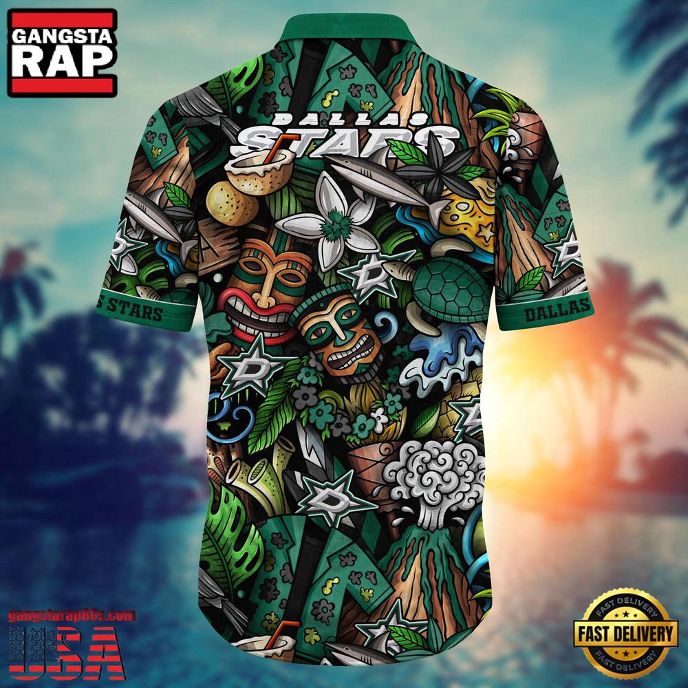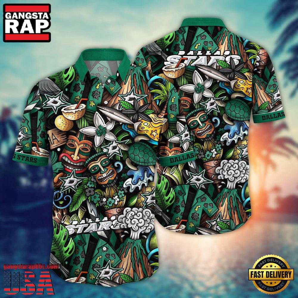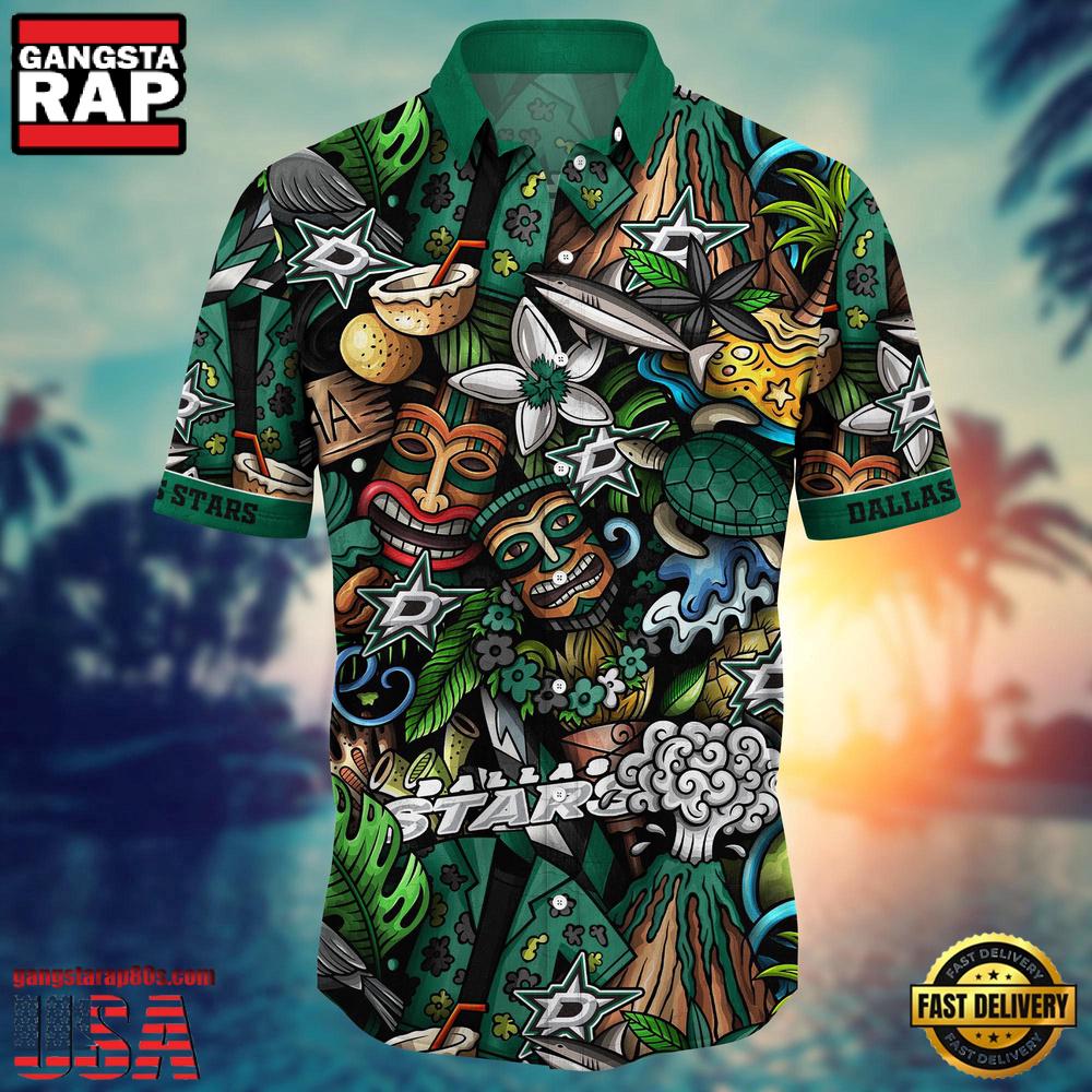 Embrace the spirit of the ice and the warmth of the tropics with the Dallas Stars NHL Hawaiian Shirt. This standout piece combines the classic comfort of a Hawaiian shirt with the iconic branding of the Dallas Stars, making it a must-have for fans who want to showcase their team pride in vibrant style. Perfect for 2023’s trend of sports-inspired casual wear, this shirt offers an exciting way to incorporate your love for hockey into your everyday wardrobe.