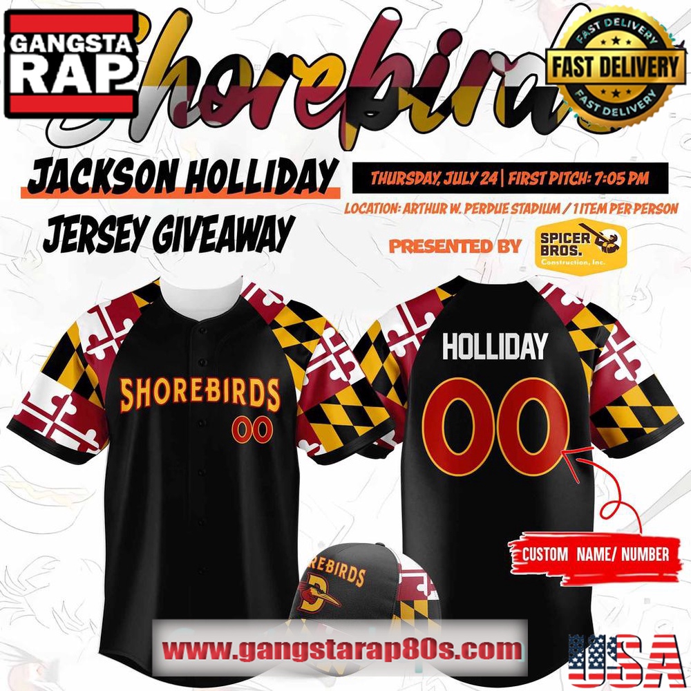 Step up to the plate with the Delmarva Shorebirds Maryland Pride Jackson Holliday Custom Baseball Jersey, a must-have piece for any avid baseball fan or sports memorabilia collector. This top-tier jersey not only celebrates your passion for the game but also showcases your pride in the Maryland Shorebirds franchise. Designed with both style and comfort in mind, this jersey highlights the exceptional talent and performance of Jackson Holliday, a rising star who has carved out his identity in the world of baseball.