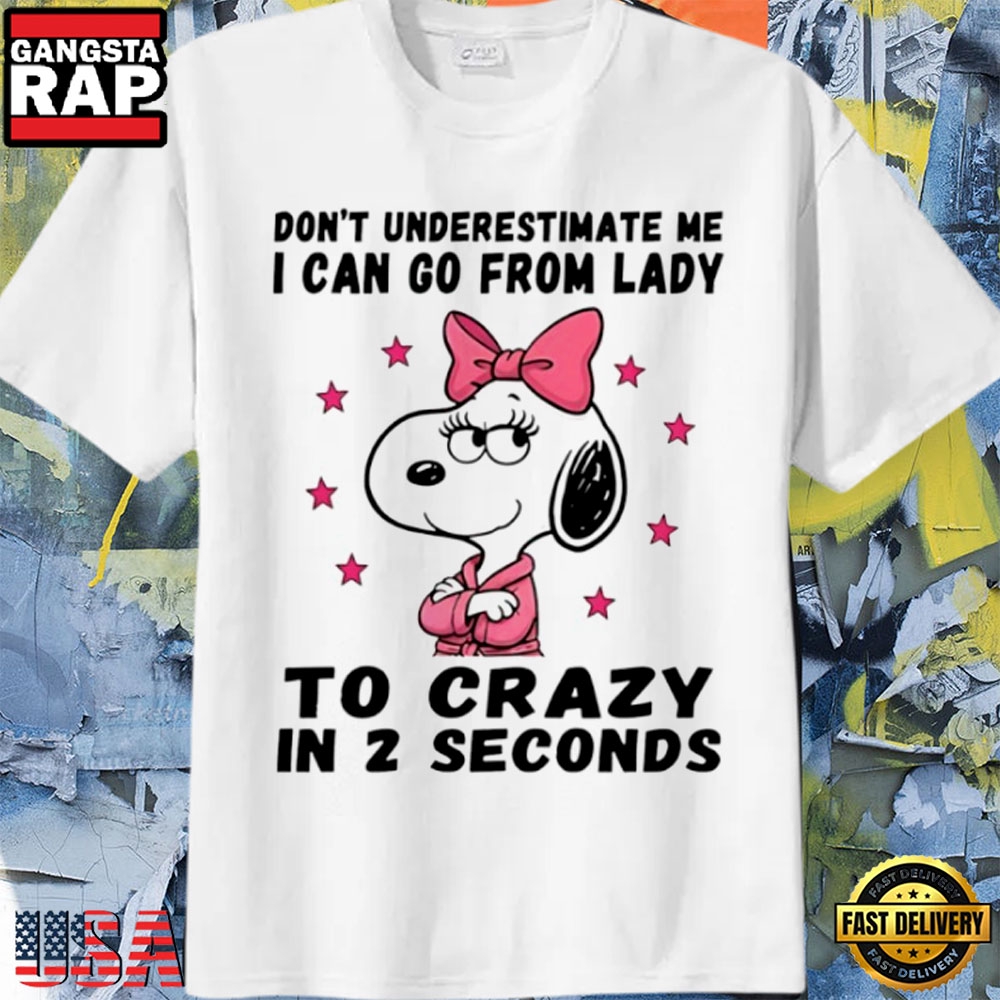 Photos Of Don’t Underestimate Me Snoopy Funny Quote Lady To Crazy T-Shirt