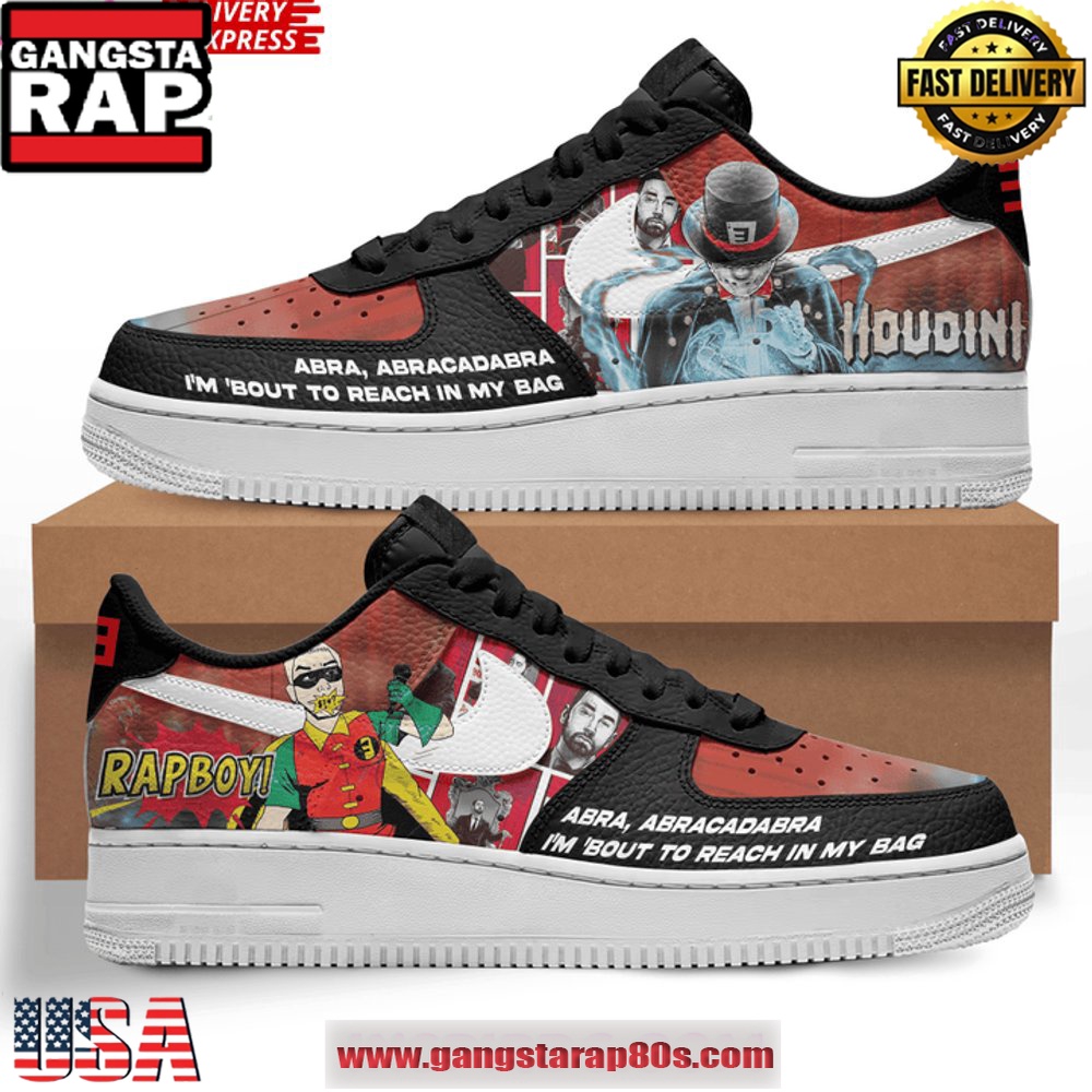 Step into the limelight with the Eminem Houdini Slim Shady Is Back Air Force 1 Running Sneakers Shoes—a masterpiece of style and function. These sneakers are not just shoes; they are a statement. Designed in 2023, these exclusive kicks are a tribute to the iconic Slim Shady and are perfect for fans and sneaker enthusiasts alike.