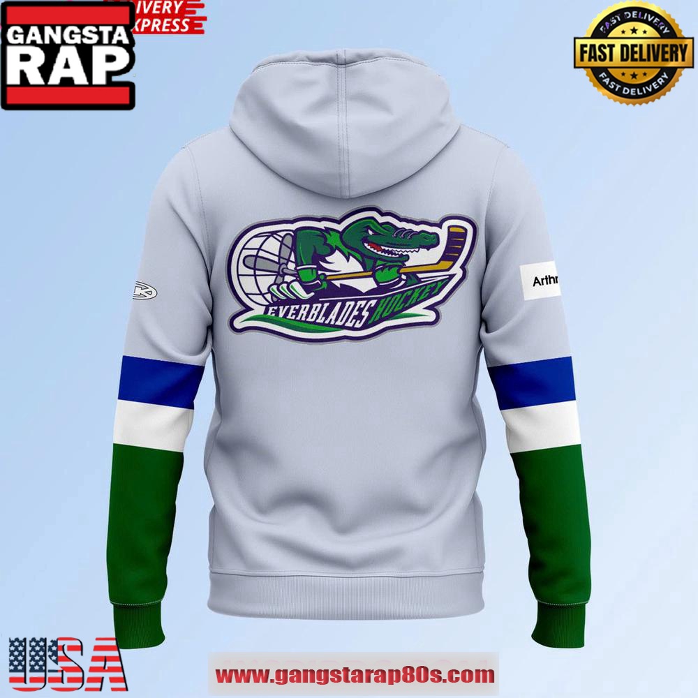 Created thoughtfully, this hoodie embodies a timeless design with the Everblades’ iconic logo elegantly printed on the front. The blend of soft, durable materials ensures long-lasting comfort, doubling as a cozy companion on brisk game nights or casual outings. The classic unisex fit caters to all fans, making it an ideal choice for any wardrobe, positioned as a must-have apparel for both seasoned supporters and new enthusiasts looking for a trendy addition.