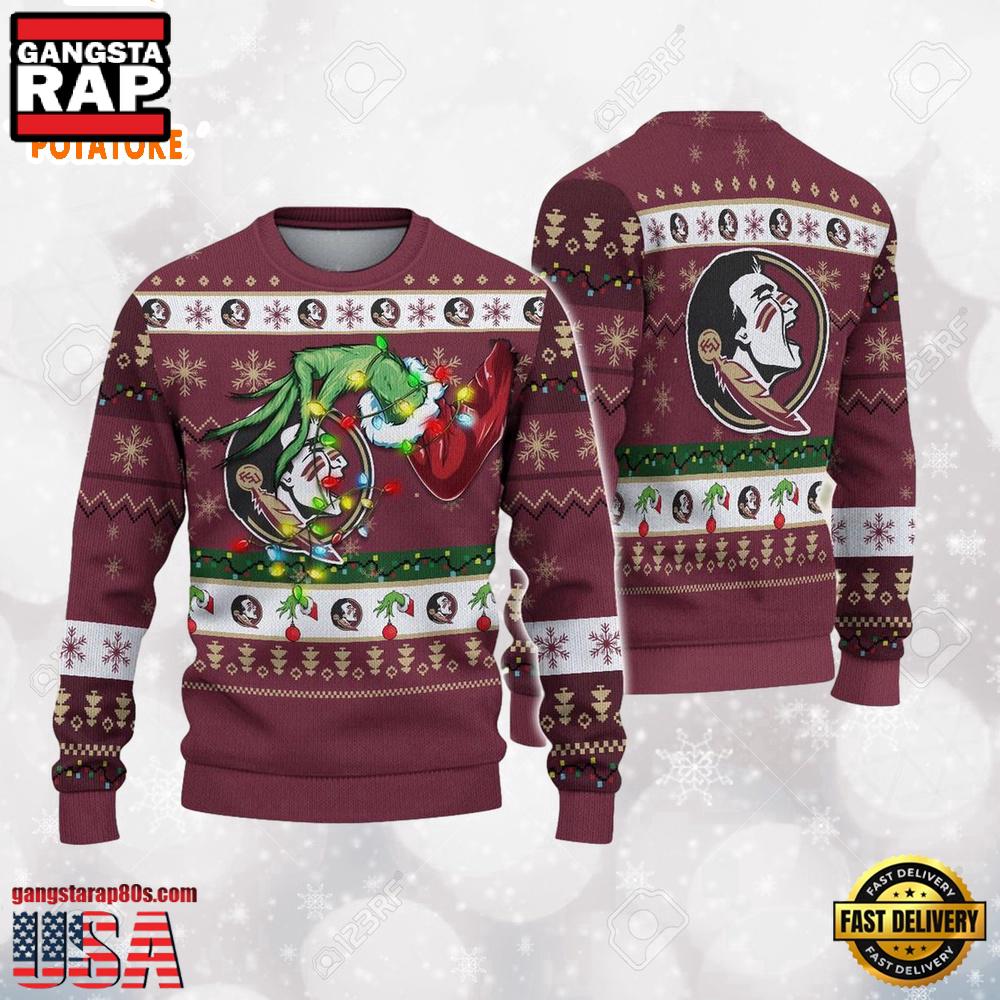 - NCAA Florida State Seminoles Grinch Hand Ugly Christmas Sweater