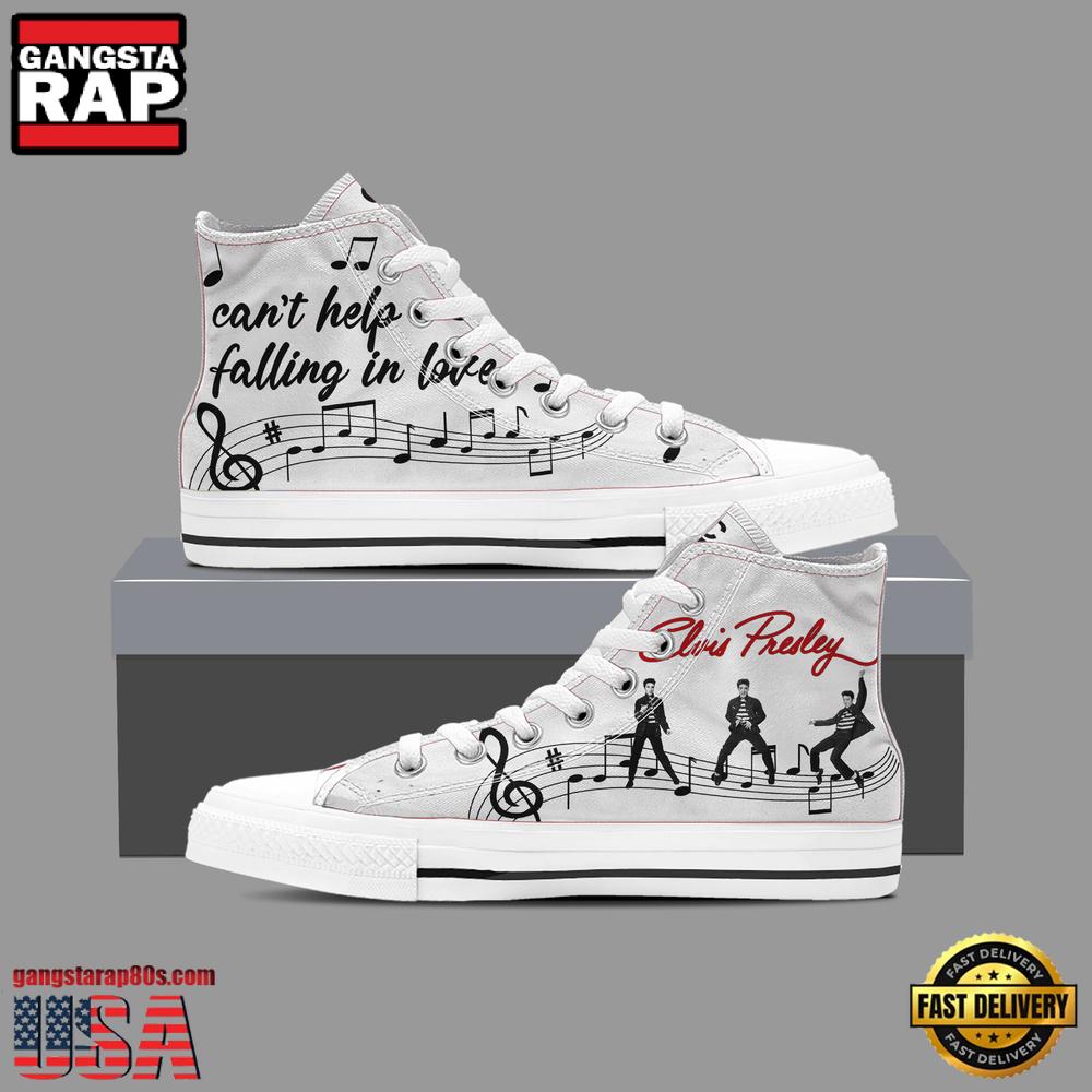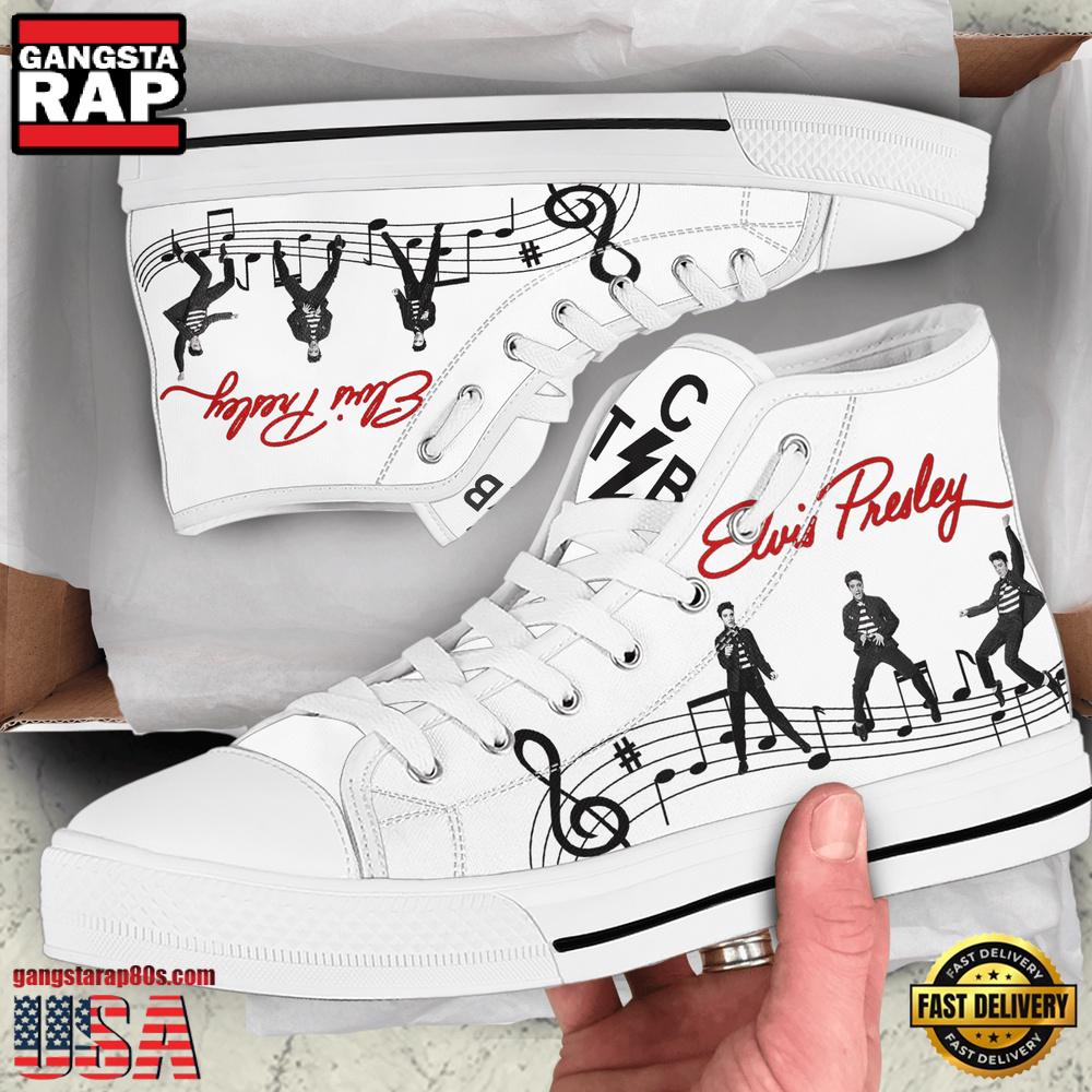 Unleash Your Inner King with Funny Elvis Presley White Color High Top Canvas Sneakers Shoes