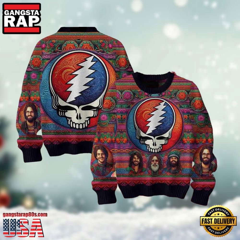 Crafted in 2023, this design incorporates both modern trends and classic Grateful Dead iconography, ensuring it stands out in the sea of standard holiday attire. Its captivating blend of colors and intricate design elements make it not just a garment but a statement piece that speaks volumes about your love for the band and the season.