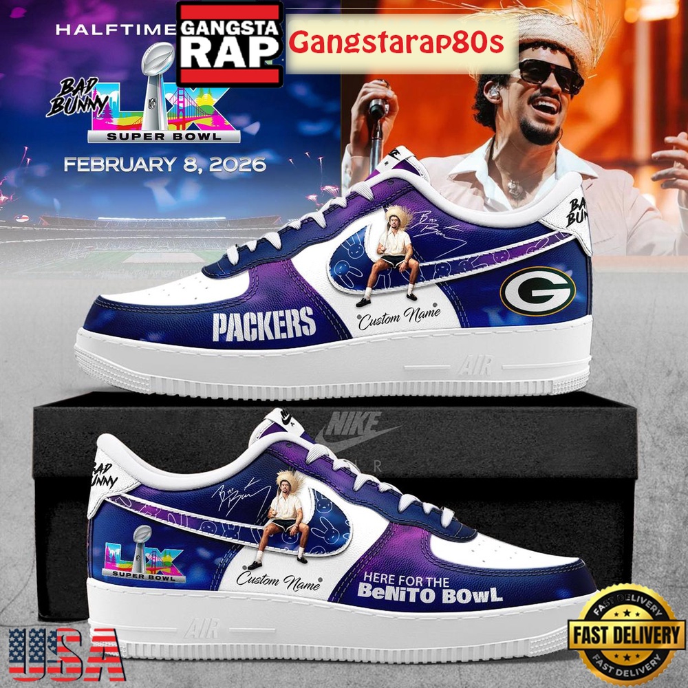 Green Bay Packers NFL Bad Bunny Here For The Benito Bowl 2026 Custom Air Force 1 Sneakers Shoes