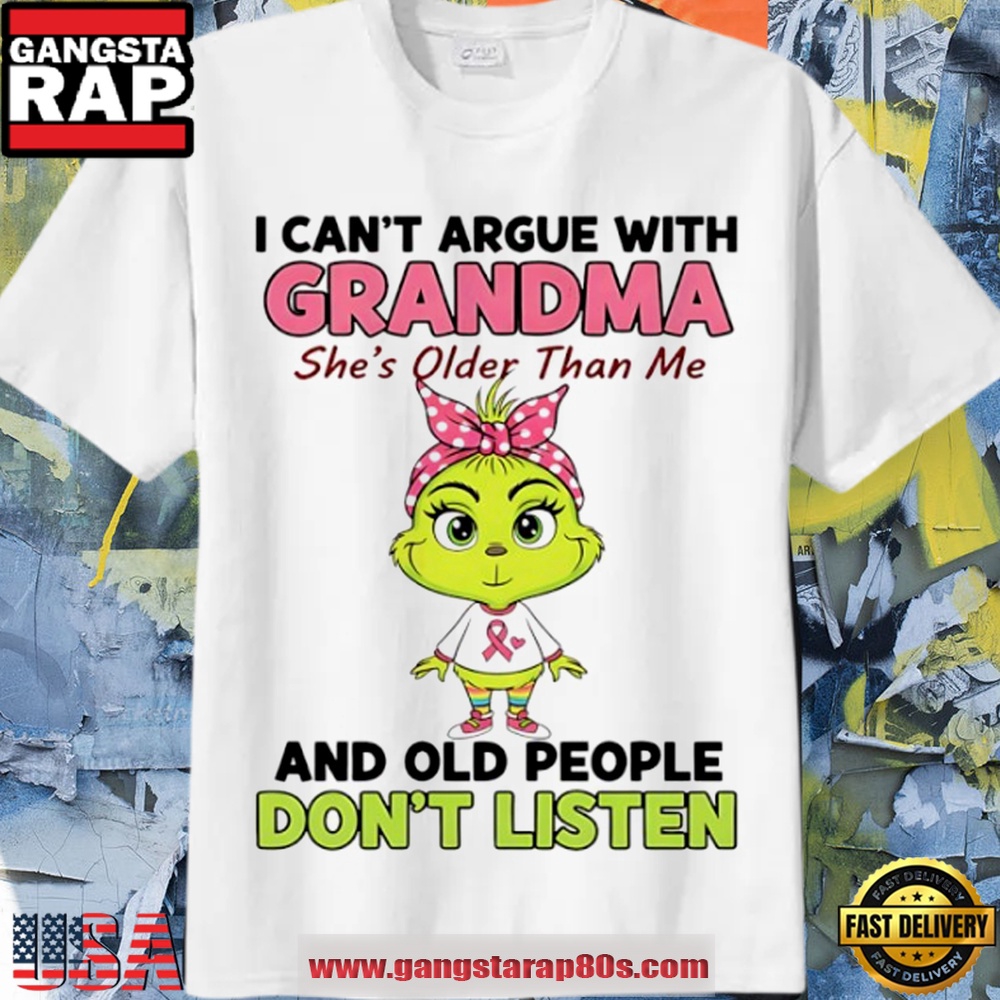 Photos Of Grinch Cancer I can’t argue with grandma she’s older than me and old people don’t listen T Shirt