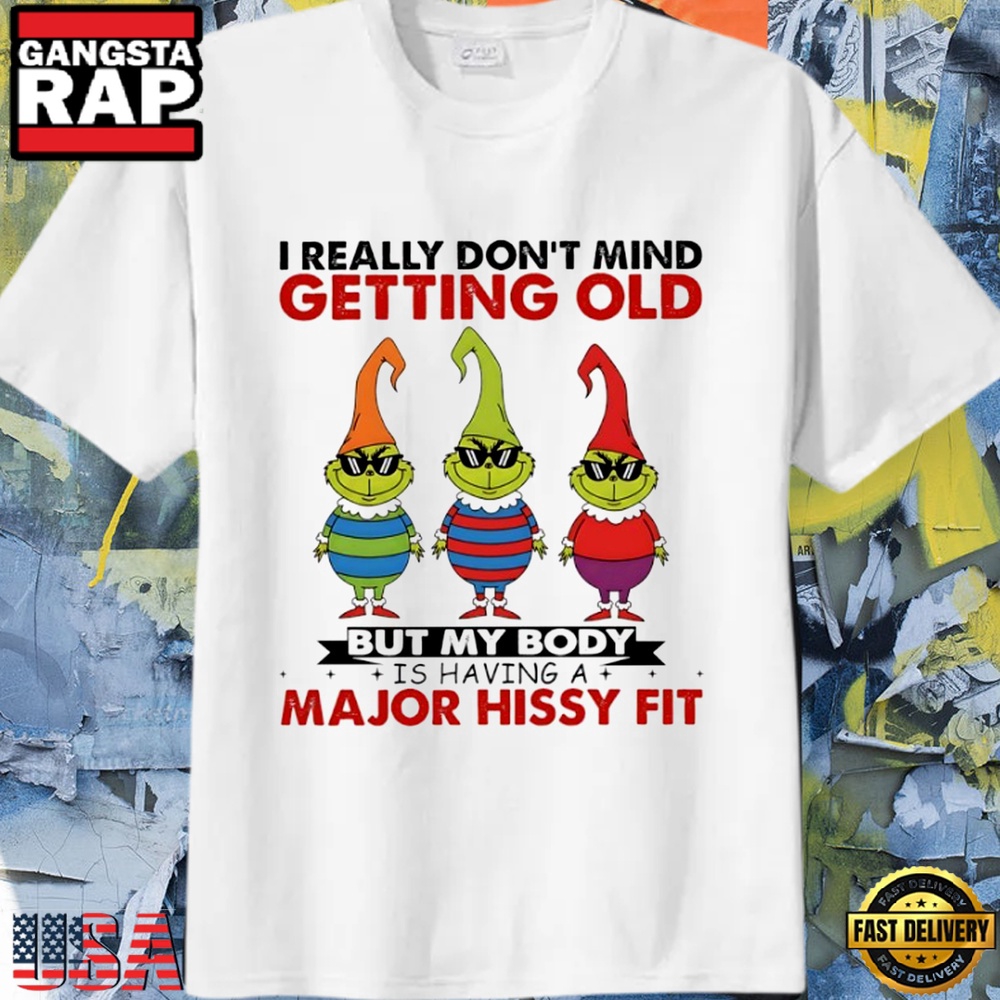 Grinch Christmas I really don’t mind getting old but my body is having a major hissy fit Unisex T Shirt Introducing our 2D Shirt, a unique blend of style and creativity. Crafted from high-quality fabric, this shirt features a captivating 2D graphic design that adds a bold statement to your wardrobe. With its vibrant colors and intricate details, it offers a modern twist on classic apparel. Elevate your fashion game with our 2D Shirt, designed to turn heads and express your individuality in style.