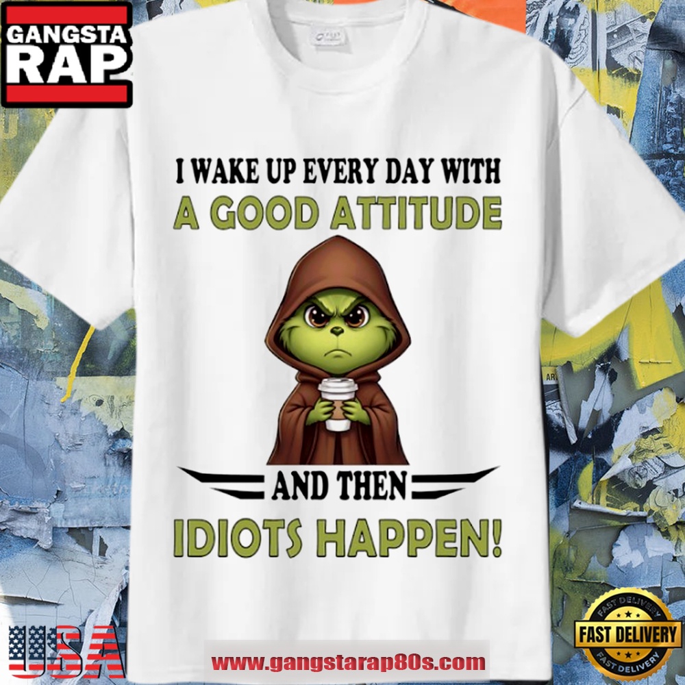Photos Of Grinch I Wake Up Every Day With A Good Attitude And Then Idiots Happen T Shirt