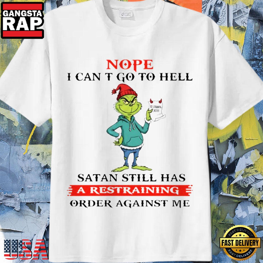 Photos Of Grinch Nope I Can’T Go To Hell Satan Still Has A Restraining Order Against Me T Shirt
