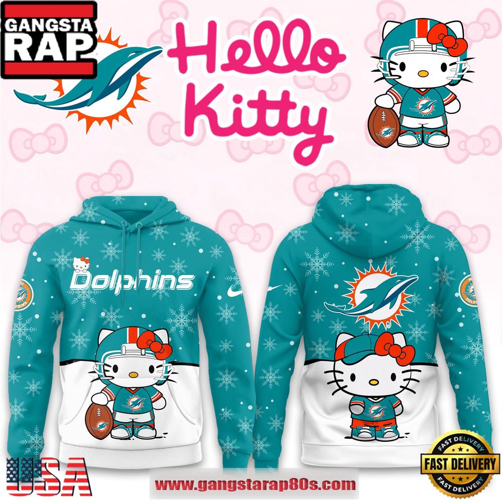 Hello Kitty x NFL Miami Dolphins 2025 Football Christmas Hoodie Shirt