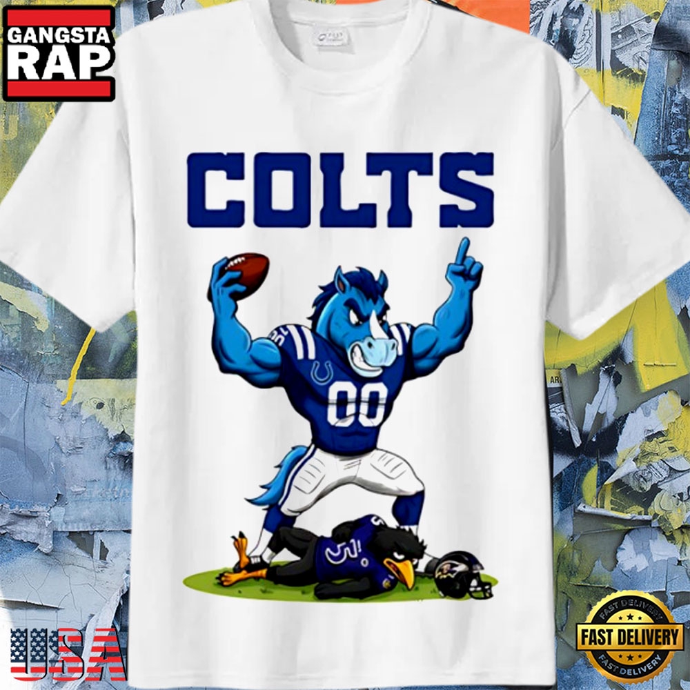 Indianapolis Colts vs Baltimore Ravens Funny Mascot Battle Football T-Shirt Introducing our 2D Shirt, a unique blend of style and creativity. Crafted from high-quality fabric, this shirt features a captivating 2D graphic design that adds a bold statement to your wardrobe. With its vibrant colors and intricate details, it offers a modern twist on classic apparel. Elevate your fashion game with our 2D Shirt, designed to turn heads and express your individuality in style.