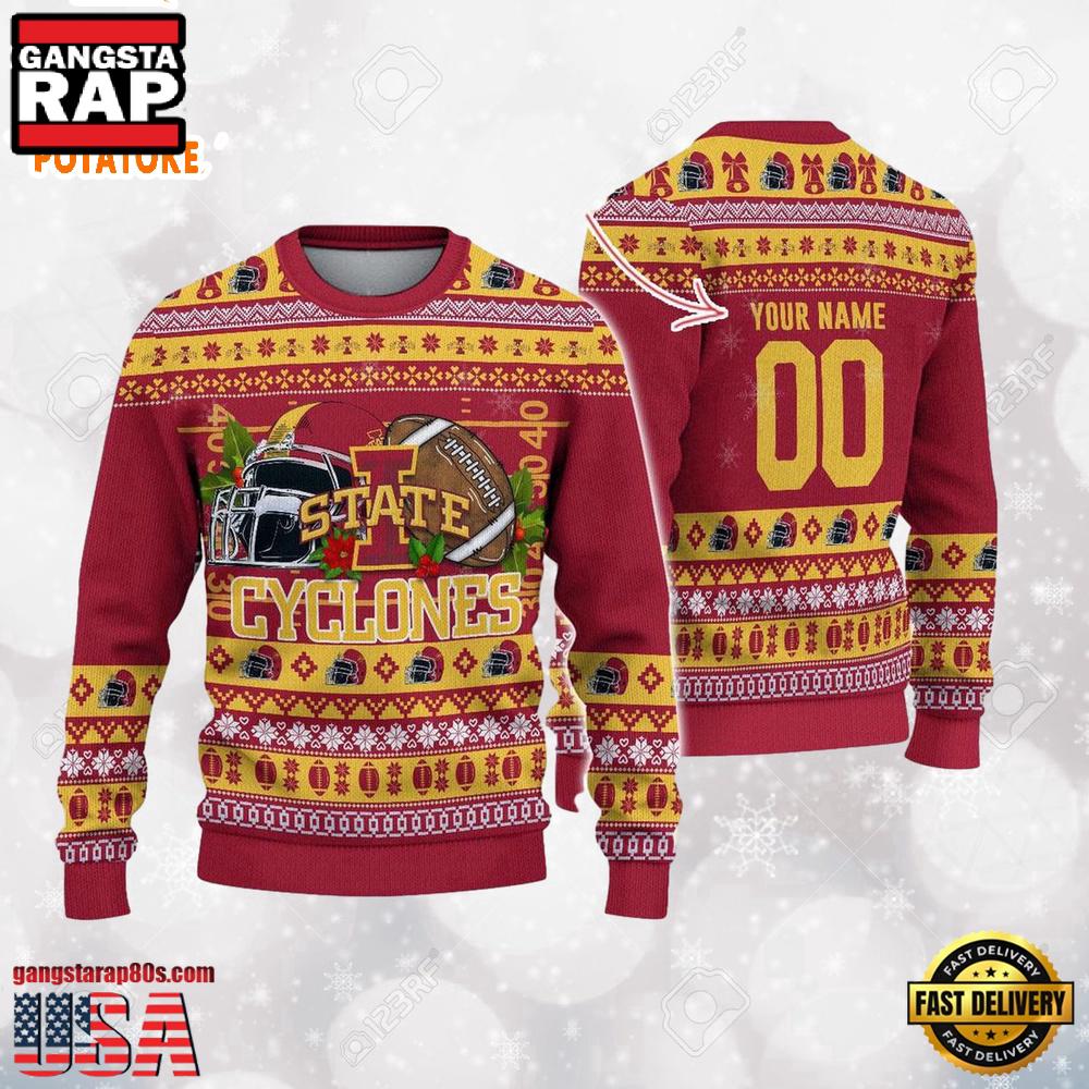 - NCAA Iowa State Cyclones Football Team Custom Name Number New Ugly Christmas Sweater