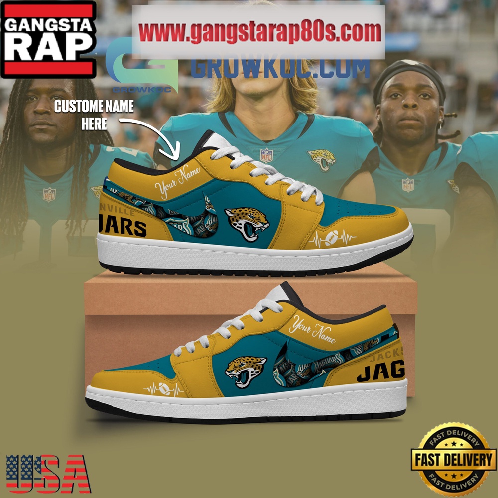 Explore the perfect synergy between legendary sneaker design, top-tier customization, and unyielding team pride with the Jacksonville Jaguars Personalized Air Jordan 1 Sneakers. Elevate your sneaker collection today and walk the path of champions, proudly and stylishly.