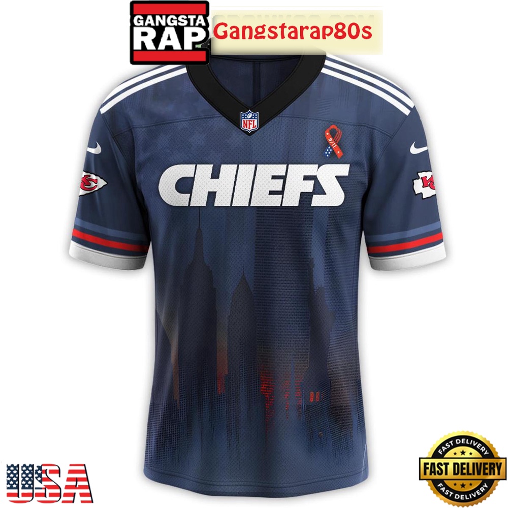 Made with high-quality fabric, this jersey provides both comfort and durability, ensuring it withstands any weather season. Whether you’re attending a game at the Arrowhead Stadium or simply cheering from home, this jersey is designed for all loyal Chiefs fans who wish to stand out with a cause. The integration of unique tribute elements appeals to emotionally driven buyers who value both sports and national pride.