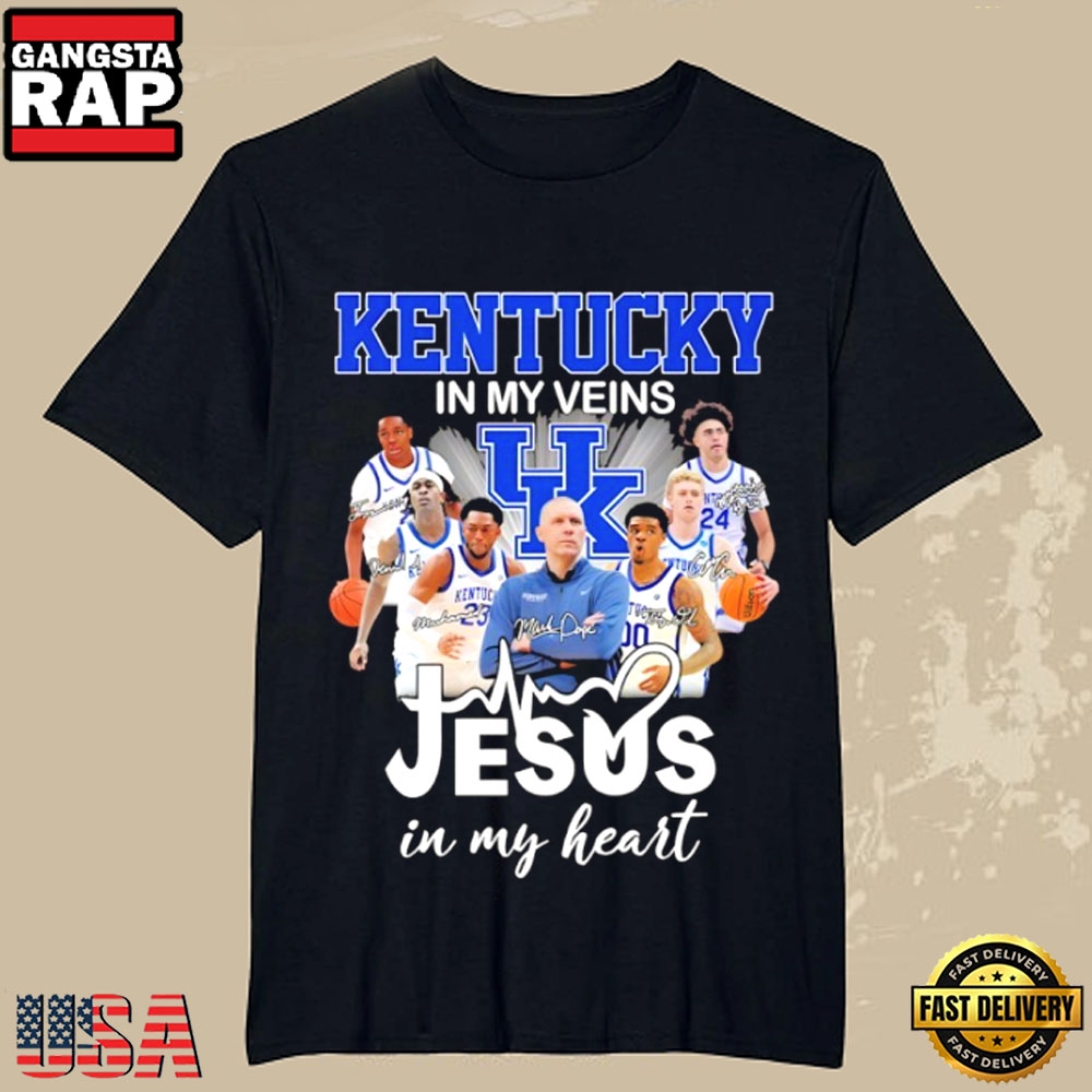 Photos Of Kentucky Wildcats Basketball Coach Mark Pope In My Veins Jesus In My Heart T-Shirt