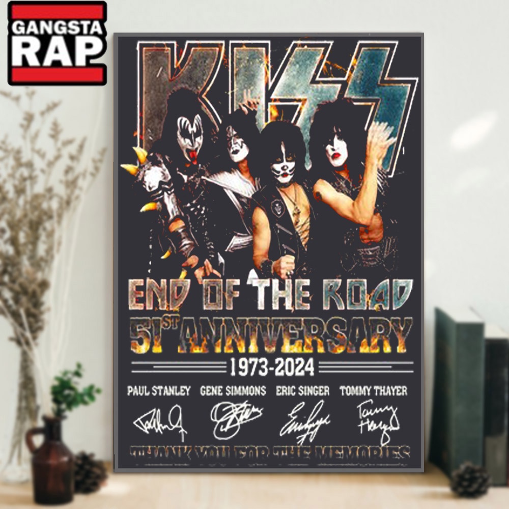 The Kiss Band End Of The Road 51st Anniversary Signature Poster Canvas Art is a stunning tribute to one of rock music’s most iconic groups. This exclusive artwork celebrates the incredible **51-year** journey of the **Kiss Band**, a legendary name in the ***rock*** genre. Perfect for **fans** and collectors alike, this **canvas art** immortalizes the band’s legacy, making it a must-have piece of **concert memorabilia**.