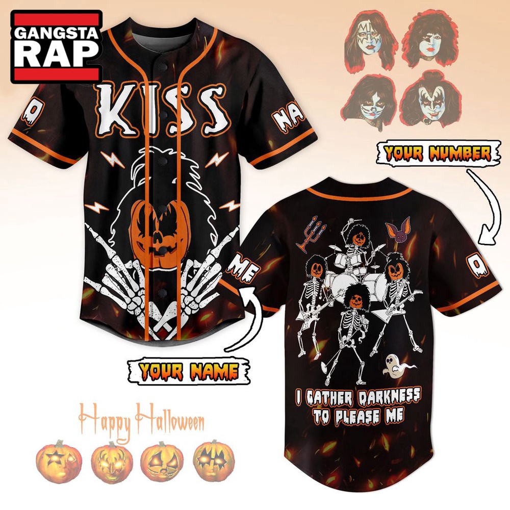 Don’t miss out on the chance to own this unique piece of **band culture** that combines a love for **rock music** with the excitement of **Halloween events**. The Kiss Band I Gather Darkness To Please Me Halloween Baseball Jersey is more than just apparel—it is a statement, a conversation starter, and a proud display of musical allegiance.