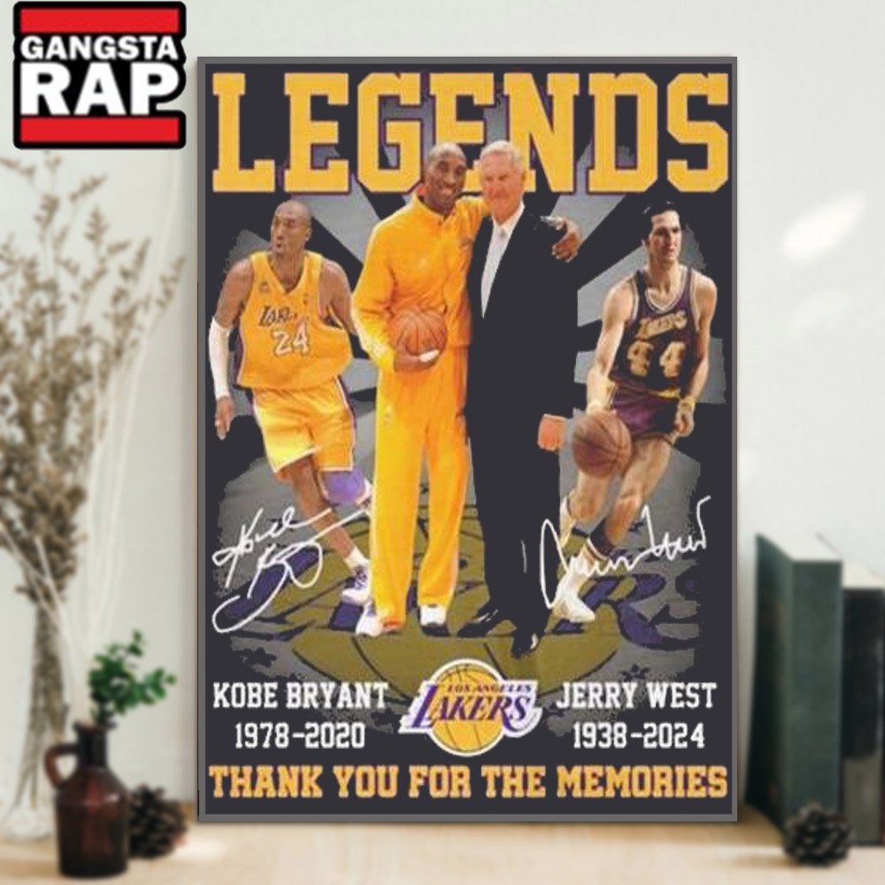 Photos Of Free Legends Kobe Bryant 1978-2020 Jerry West 1938 -2024 Los Angeles Lakers Signatures Poster Canvas